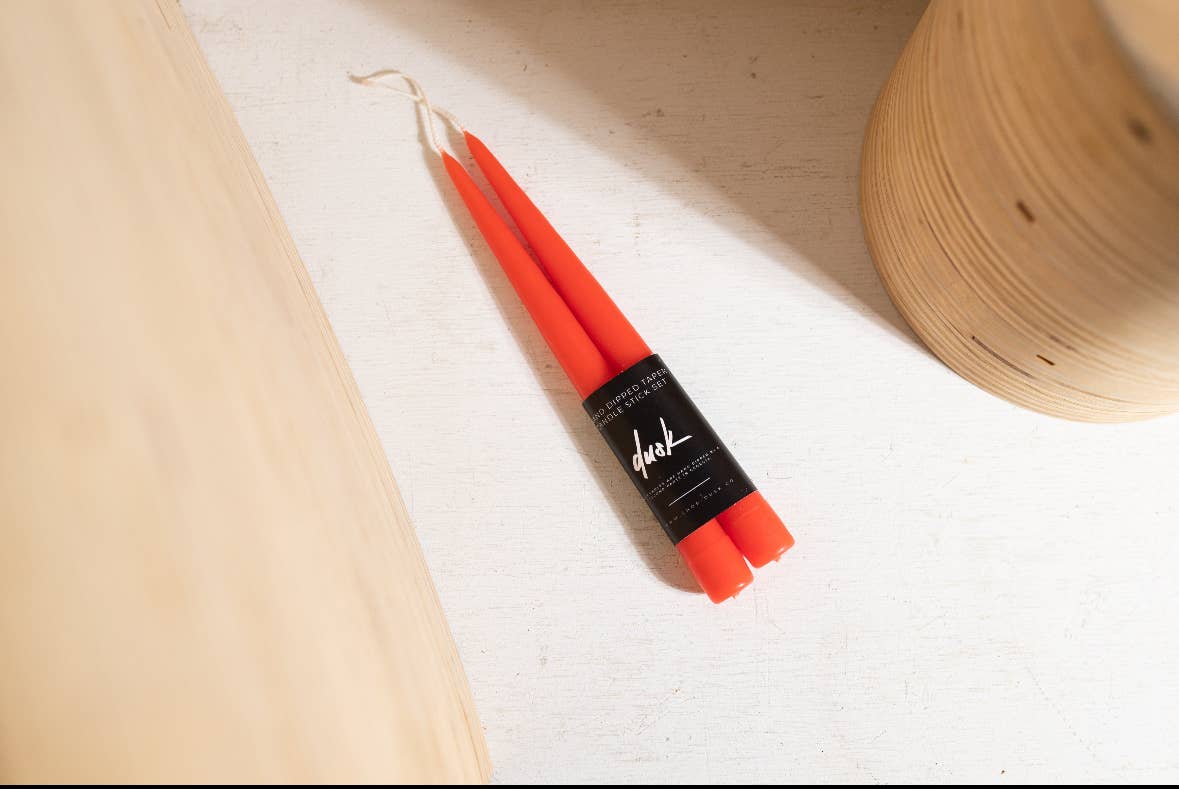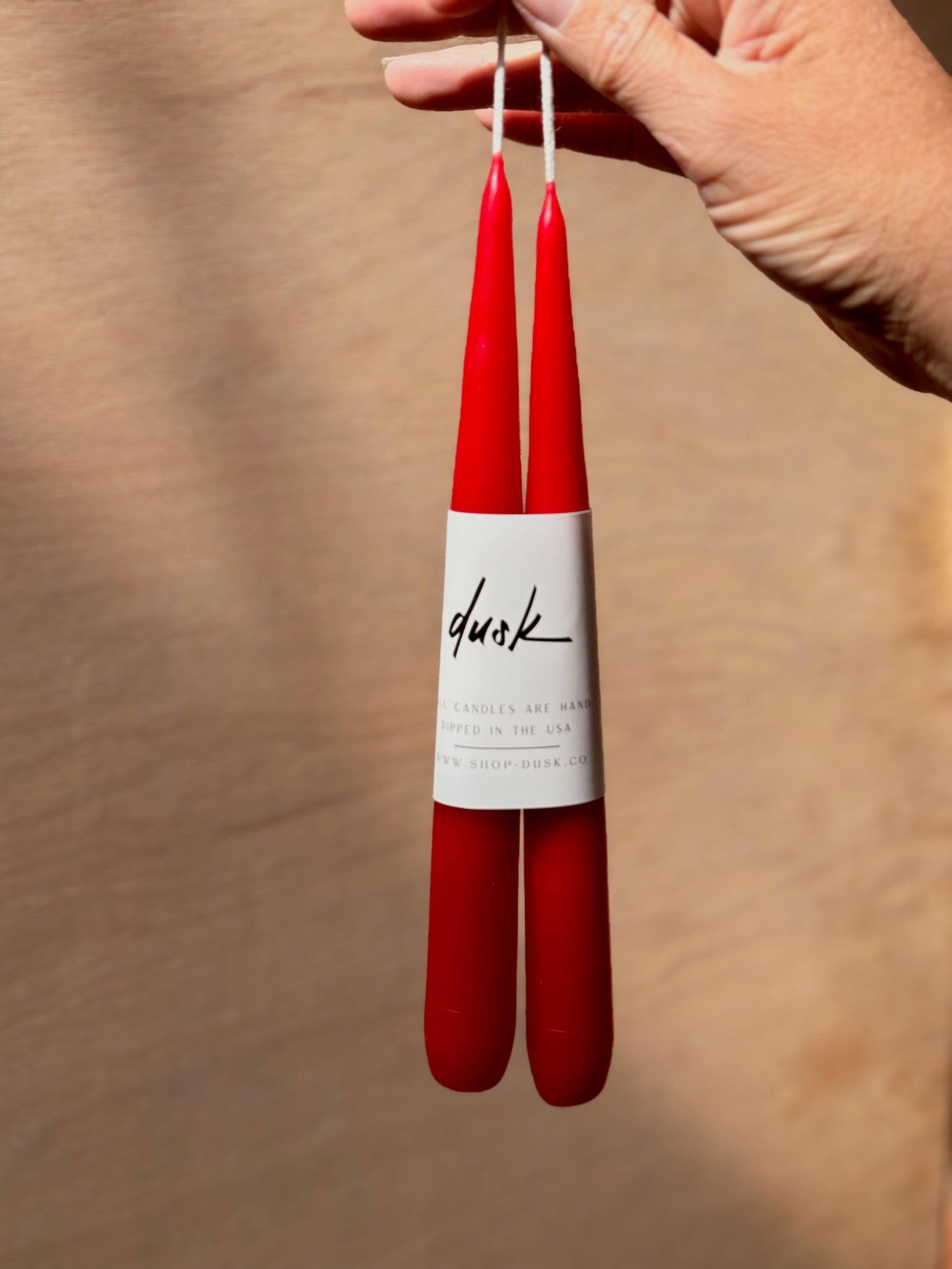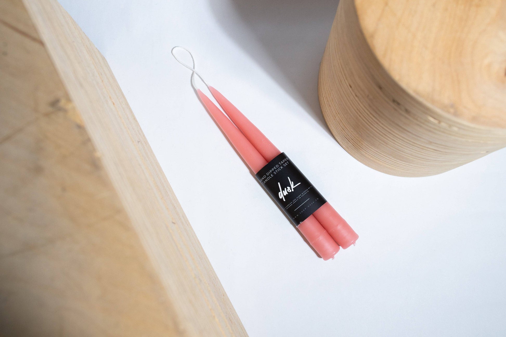 Hand dipped 9 inch inch long taper candle stick set (connected by the wick)