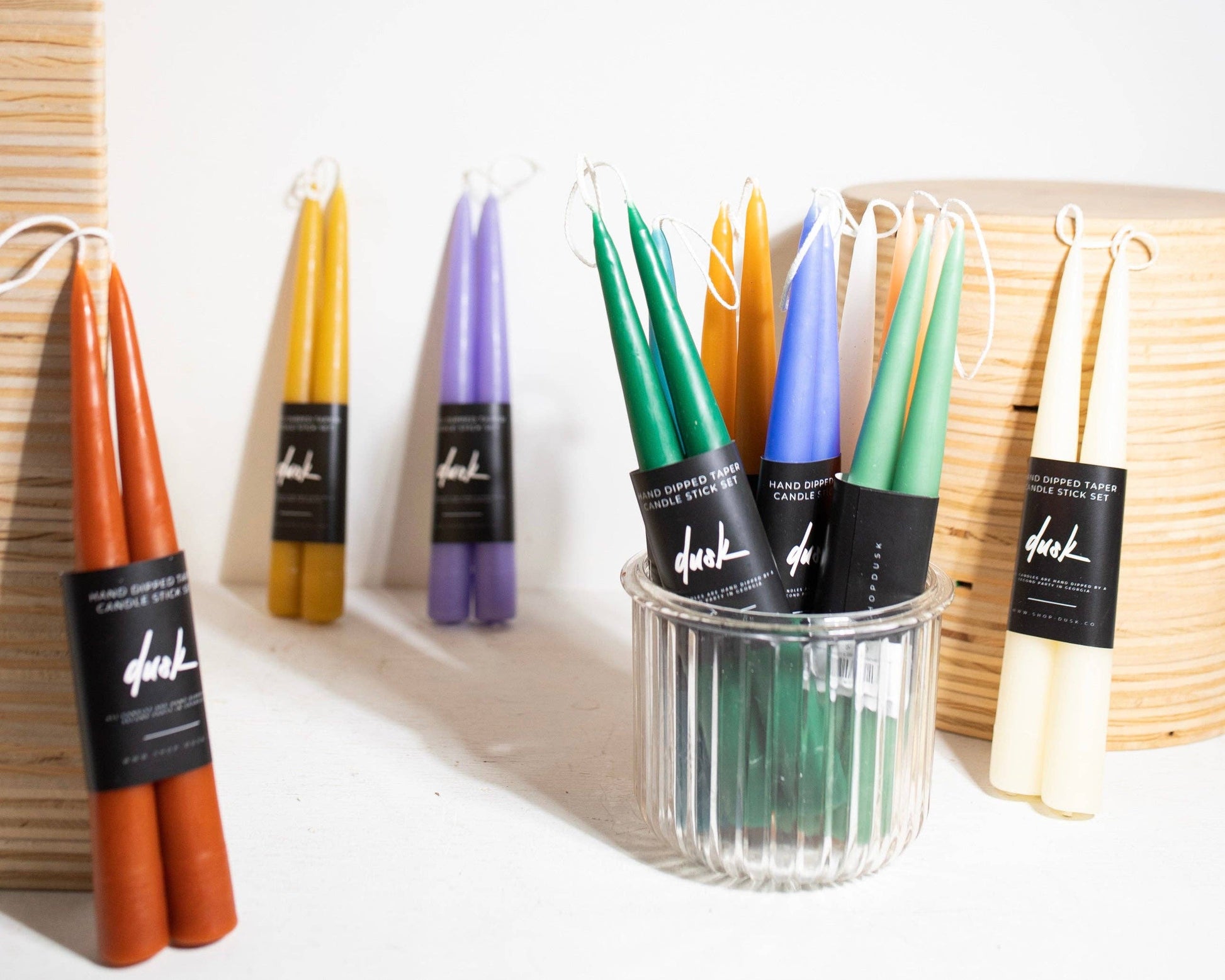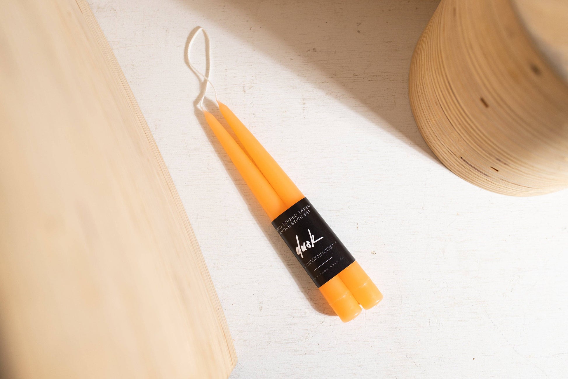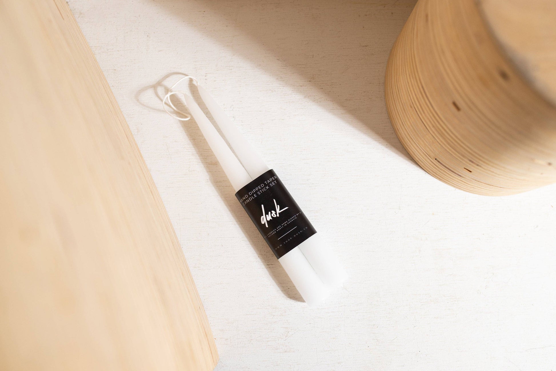 Hand dipped 9 inch inch long taper candle stick set (connected by the wick)