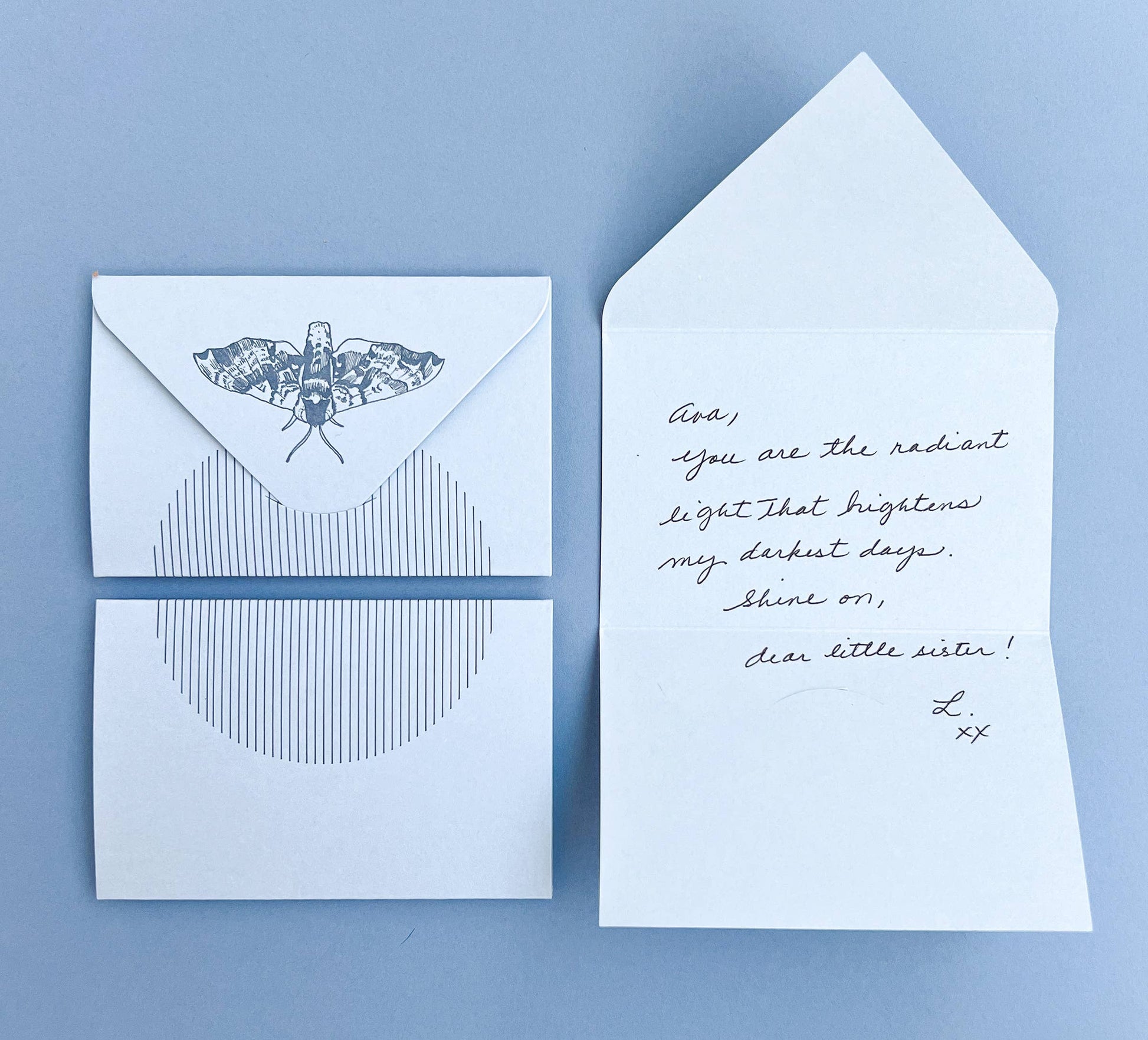 • the sphinx moth was letterpress printed in night blue ink on beautiful heavy weight placid blue paper