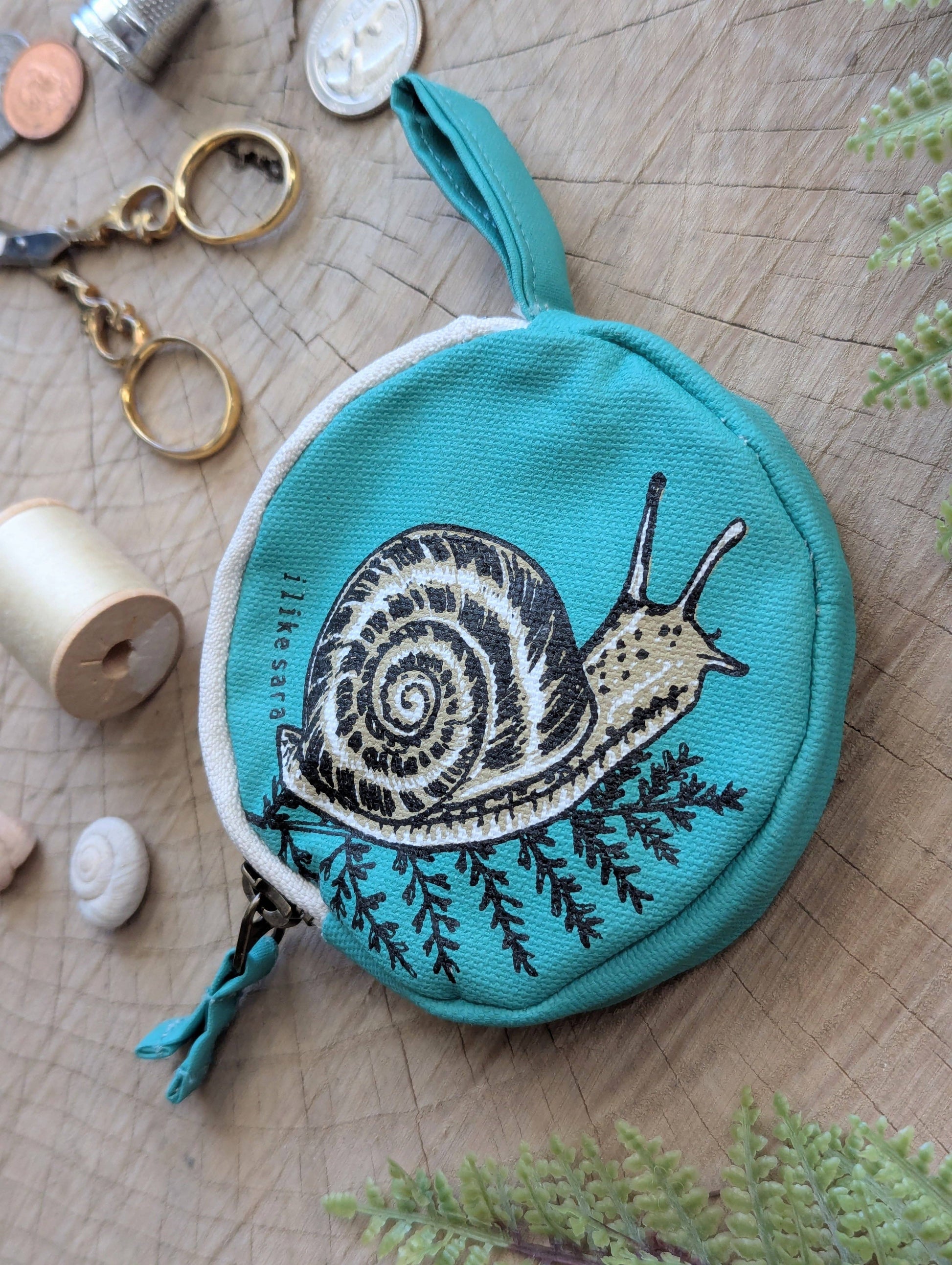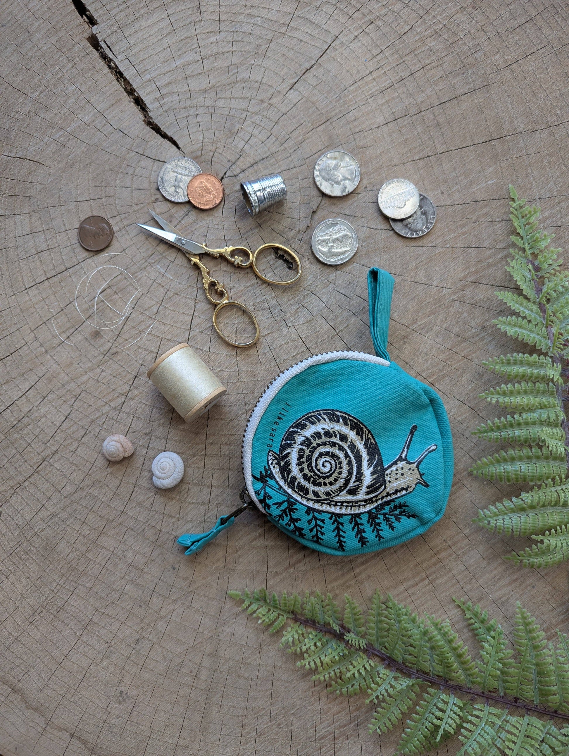 Coin pouch | snail - teal zipper bag with waterproof lining