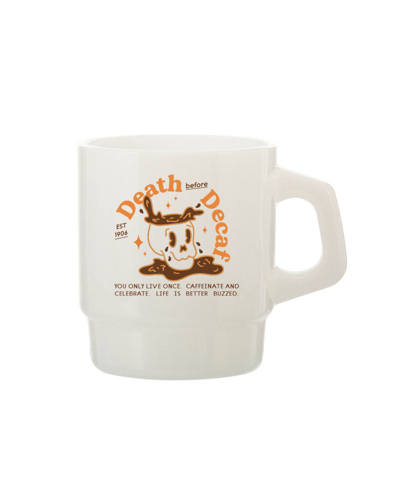 This mug is part of our spooky diner collection. Death before decaf is a highly caffeinated coffee spot where even the dead come to get their fix!