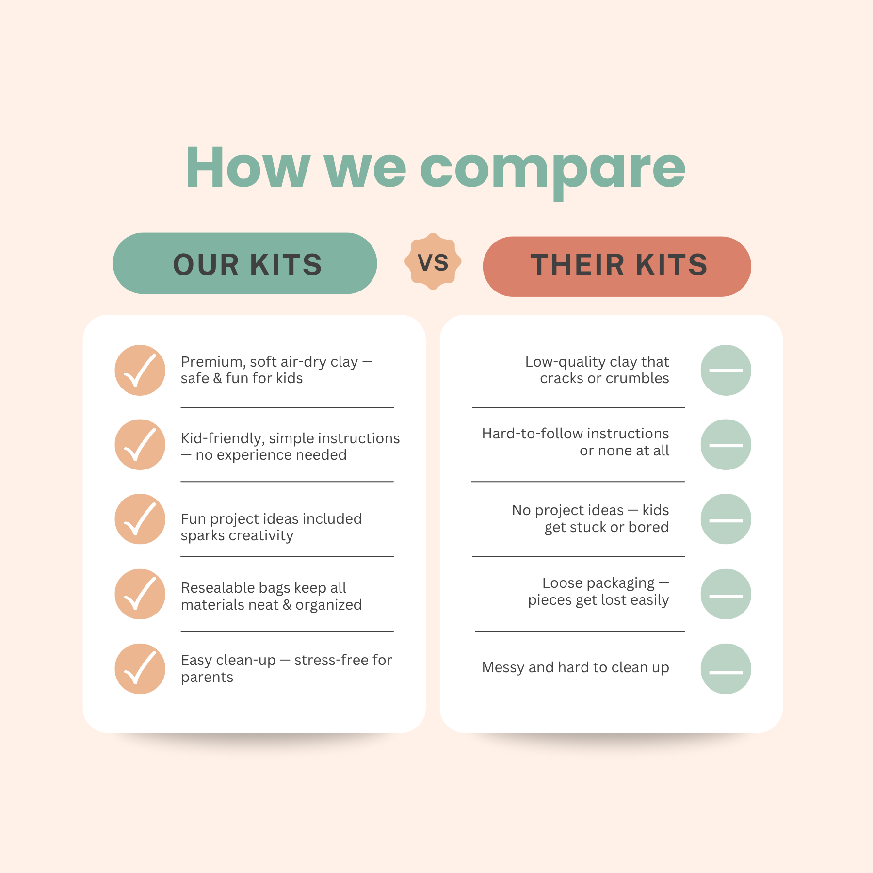Let little hands explore, squish, and shape with our Kids Clay Kit! Designed for ages 5+, this beginner-friendly kit sparks creativity and imagination while helping kids develop fine motor skills and artistic confidence. With easy-to-use air-dry clay and colorful paints, kids can create their very own masterpieces—perfect for playtime, rainy days, parties, or family craft nights.