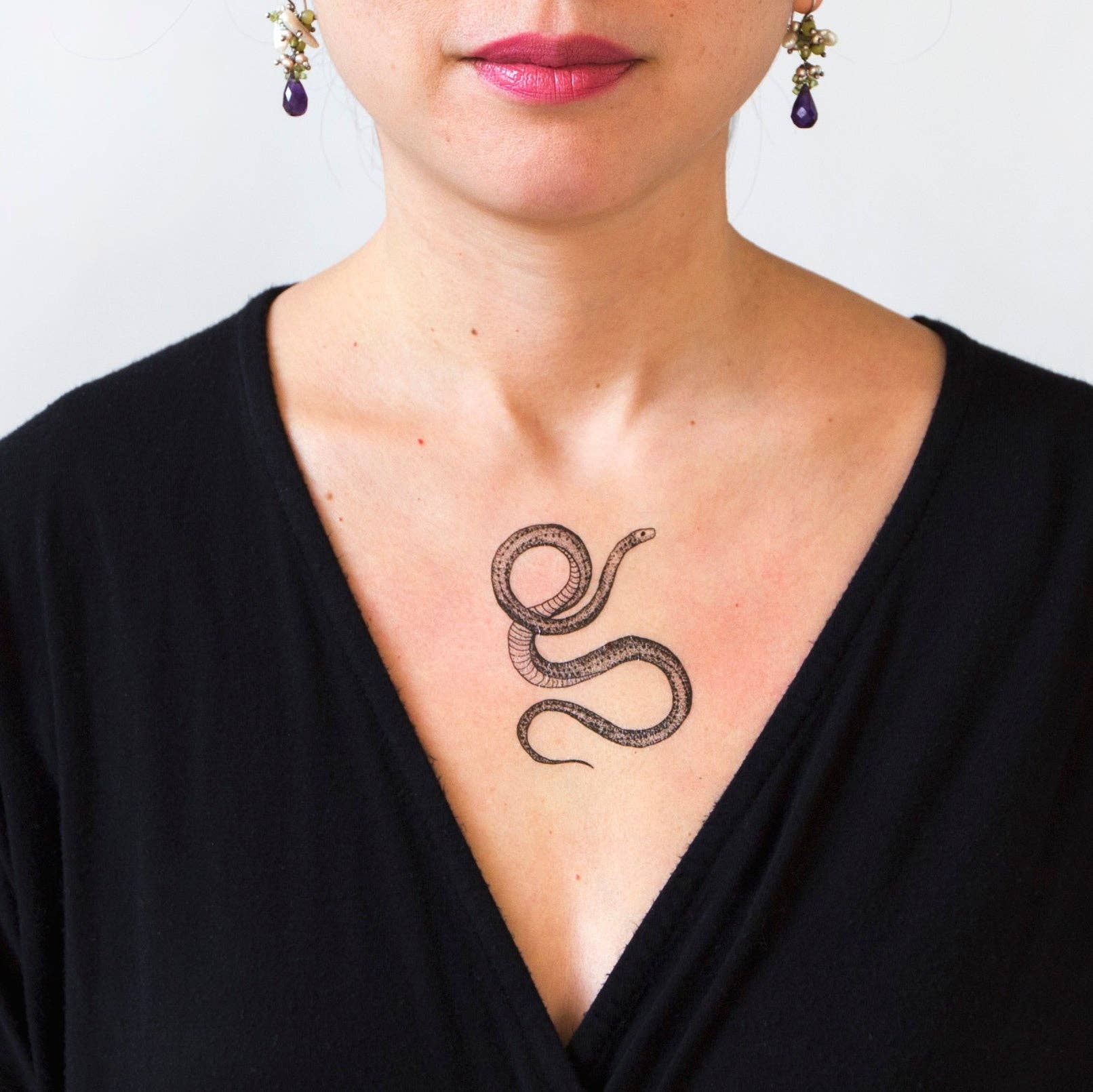 Get the Serpent designs before they are hissssssss-tory. Serpent by Tea Leigh from Tattly Temporary Tattoos. Quality, non-toxic and made in the USA. Fake tattoos by real artists! Tattly Pairs include two of each design packaged in a polybag and sealed with a branded topper that's ready to hang. Topper is 2" tall and these tattoos vary in size.