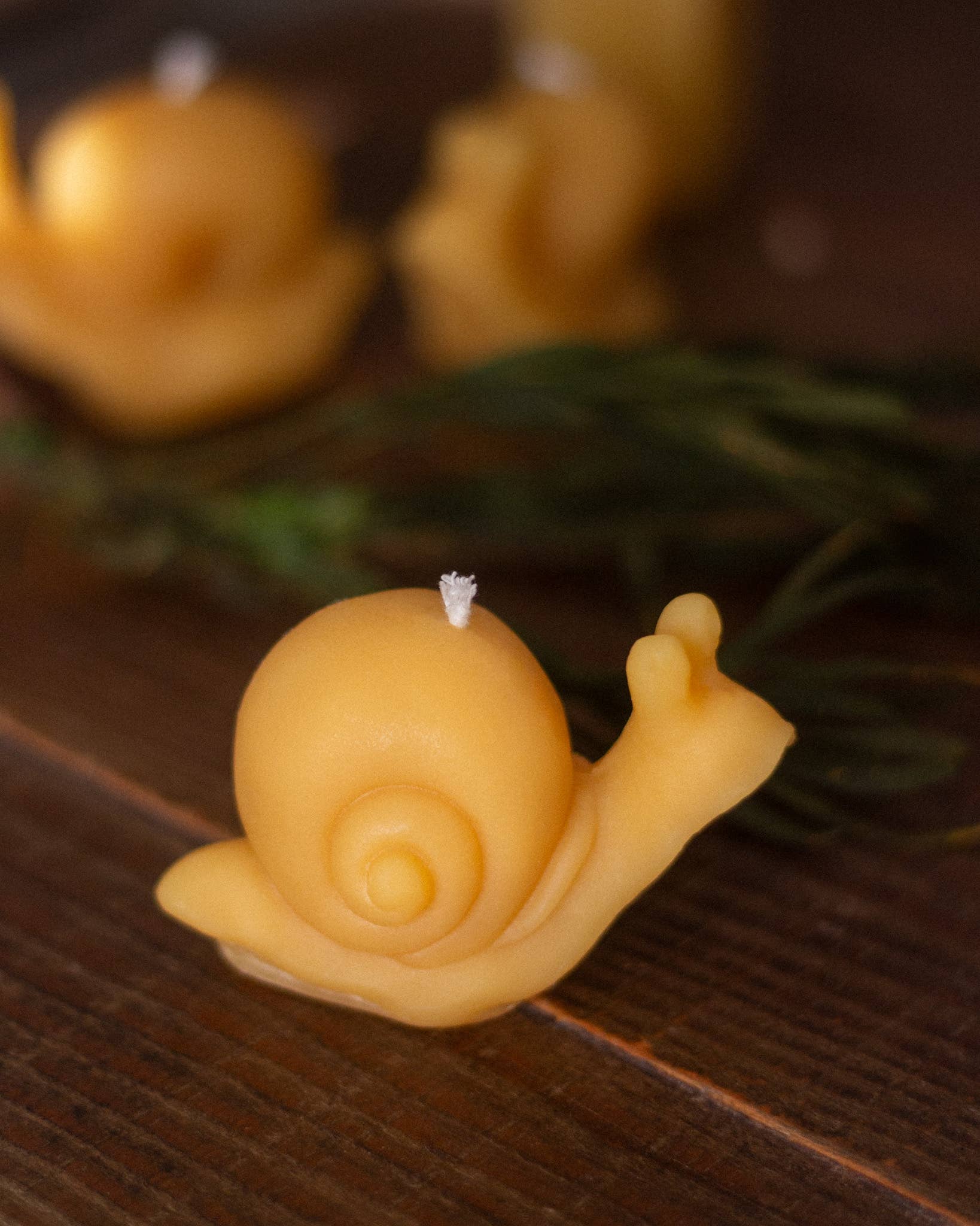 This snail measures approximately 2 '' tall and 3.5'' wide. My new favorite candle! Who couldn't love a little snail? Burns long and bright with a scent of pure beeswax.