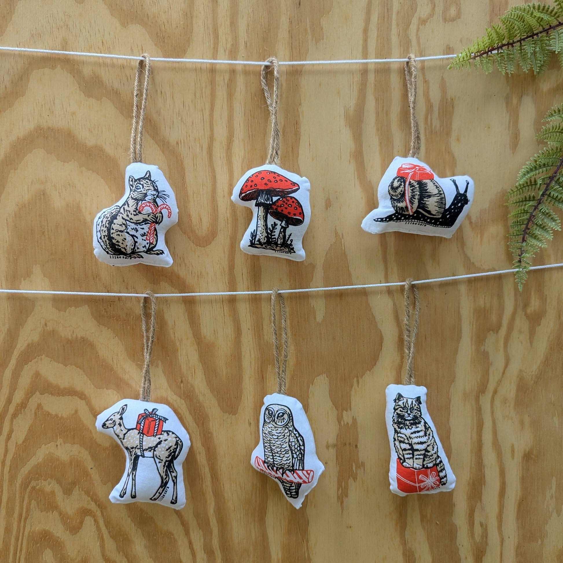 Stuffed plush ornament | squirrel with candy canes - hand-screenprinted forest woodland holiday Christmas decor