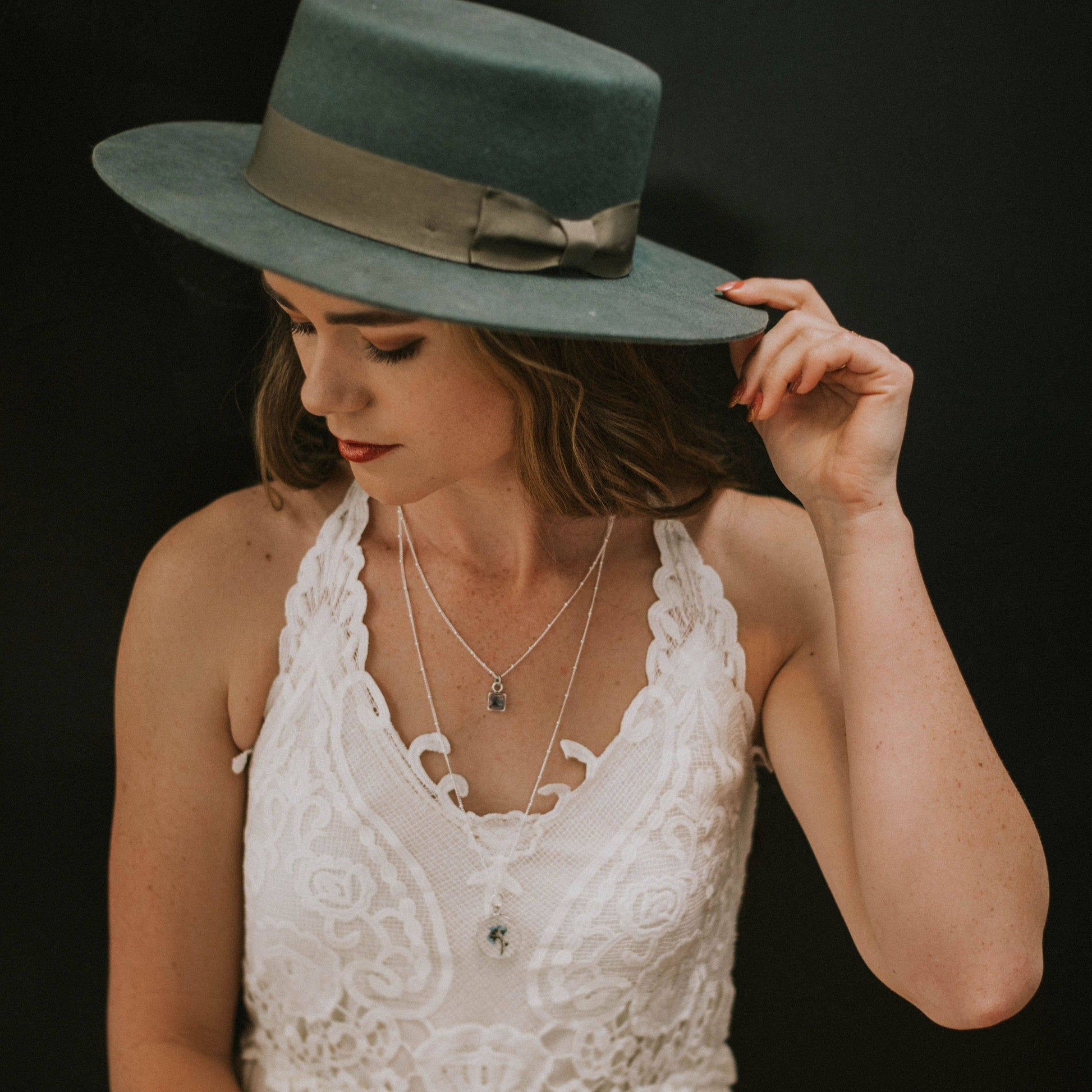 Chain is 18” long, gold or silver plated brass. Choose from a plain chain or a satellite chain, see picture for reference. Model is wearing an 18" chain. The symbolism of the botanical is printed on a tag that is attached to your jewelry.