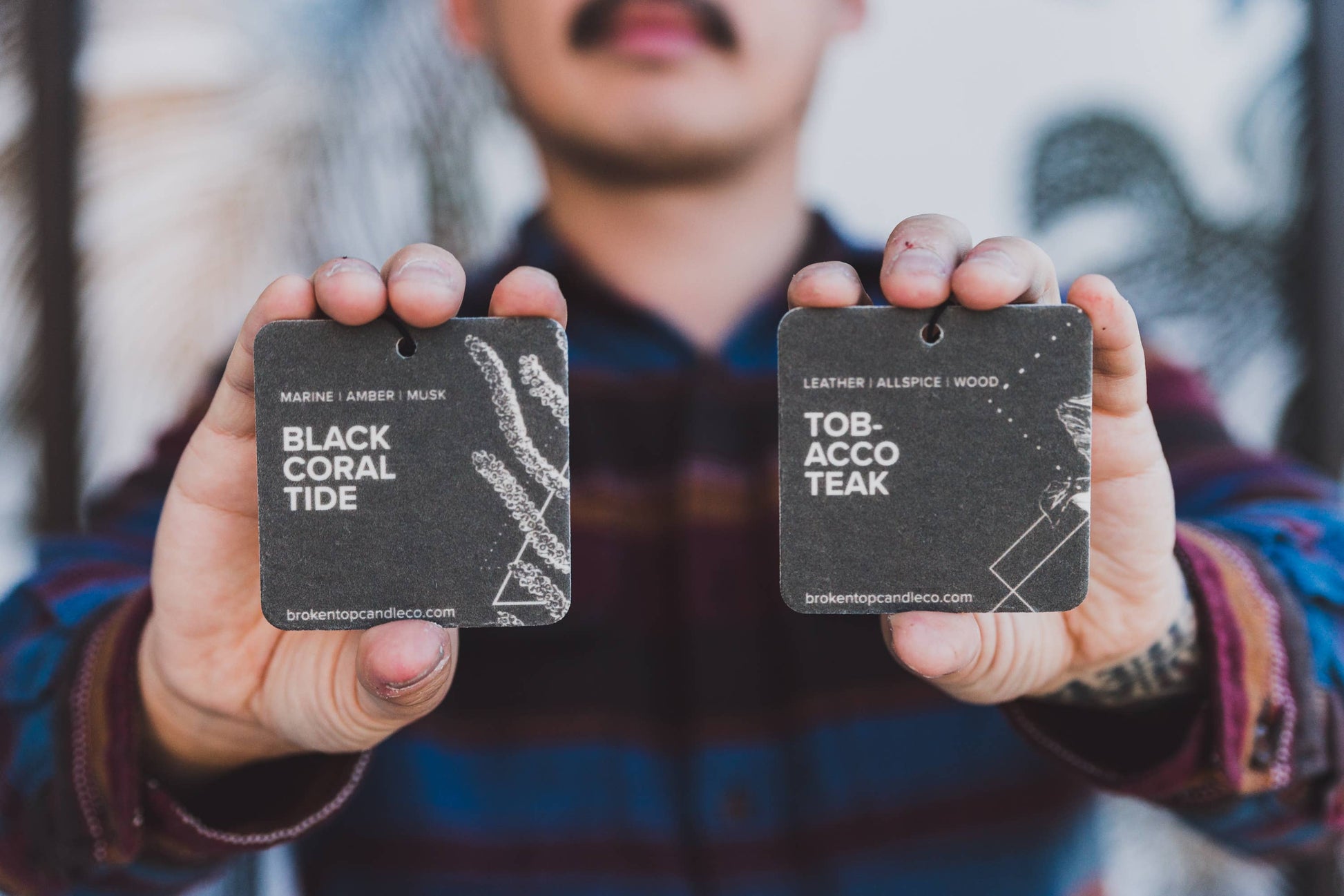 tobacco car freshener, leather car scent, teak air freshener, masculine car fragrance, handmade, warm fragrance, giftable s