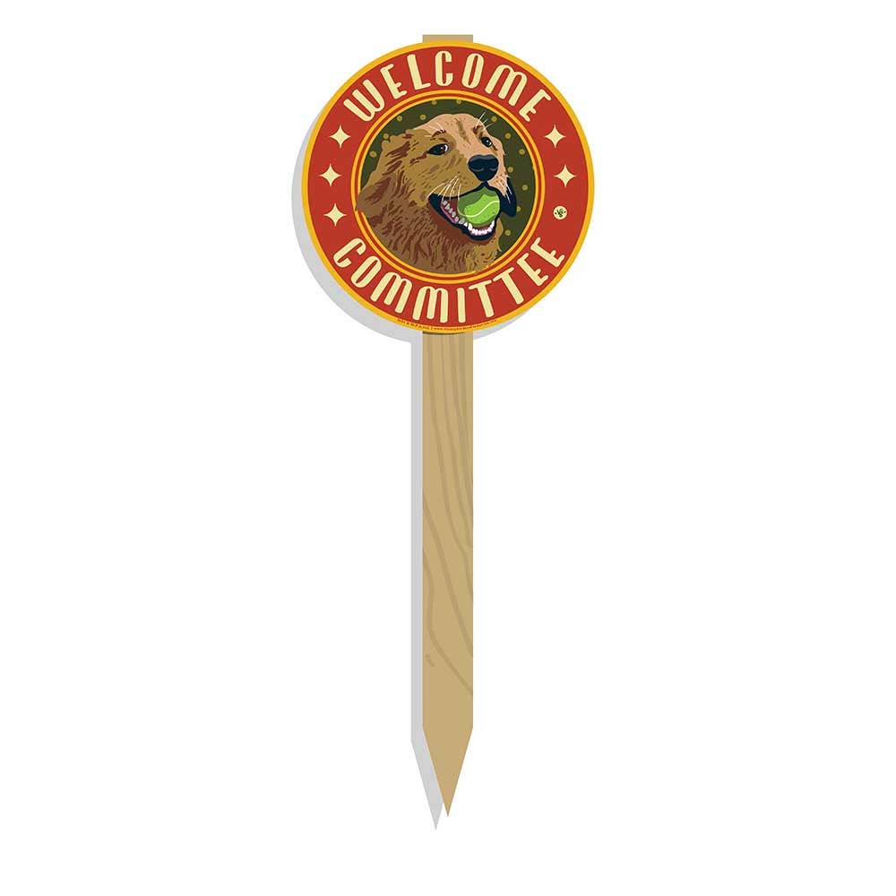 Welcome Committee: Golden Retriever Garden Sign